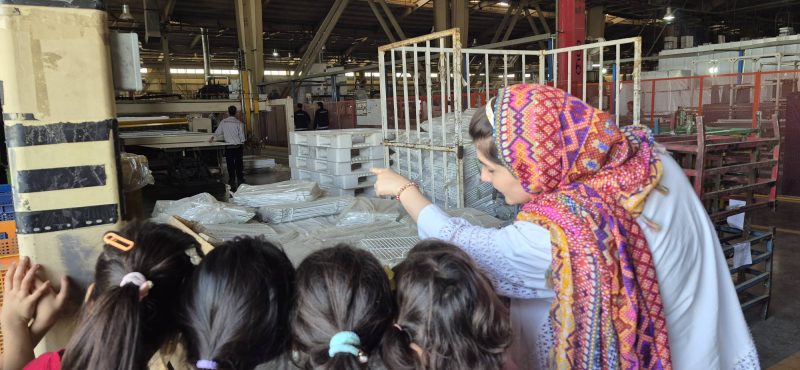 ﻓﺮزﻧﺪان ﭘﺲ از ﮐﺴﺐ اﻃﻼﻋﺎت اوﻟﯿﻪ ﺑﻪ ﺑﺨﺶ ﻫﺎی ﻣﺨﺘﻠﻒ ﮐﺎرﺧﺎﻧﻪ ﻫﺪاﯾﺖ شدند و از ﻧﺰدﯾﮏ ﺑﺎ ﺧﻄ ﺗﻮﻟﯿﺪ ،  دﺳﺘﮕﺎه ﻫﺎی اﺗﻮﻣﺎت،  ﻣﺎﺷﯿﻦ آﻻت و ﺗﺠﻬﯿﺰات ﭘﯿﺸﺮﻓﺘﻪ ﻣﻮﺟﻮد در  کارخانه آﺷﻨﺎ ﺷﺪﻧﺪ.