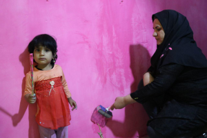 طراحی و رنگ آمیزی کتابخانه روستای چهل تخم توسط اعضای انجمن حامی زنان روستایی