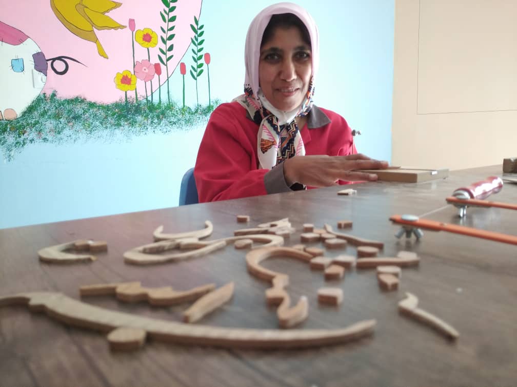 او سال 1387در مرکزپذیرش شد و پس از ارزیابی توانمندیهایش در تمامی کارگاه ها، علاقمندی خود را به کار چوب و هنر پته دوزی نشان داد و تاکنون کارهای بی نظیری خلق کرده است .
