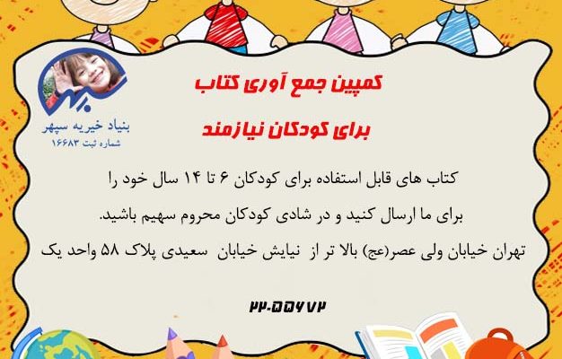 کمپین دائمی جمع آوری کتاب کتاب های قابل استفاده برای کودکان 6 تا 14 سال خود را برای ما ارسال کنید و در شادی کودکان